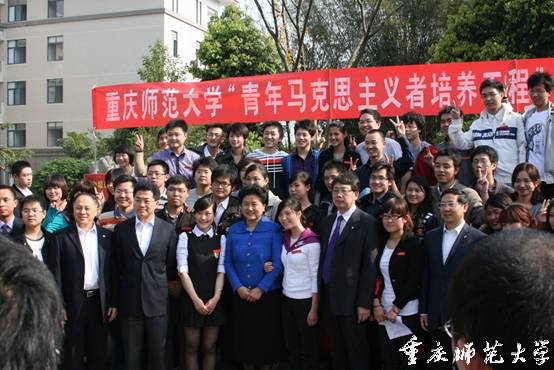 在視察完重慶師范大學(xué)圖書(shū)館之后,劉延?xùn)|走到正在勤工助學(xué)廣場(chǎng)開(kāi)展社會(huì)觀察課題調(diào)研活動(dòng)的重慶師范大學(xué)“青年馬克思主義者培養(yǎng)工程”大學(xué)生骨干培訓(xùn)班學(xué)員當(dāng)中,與大家親切握手交談。劉延?xùn)|詢(xún)問(wèn)了身邊同學(xué)的學(xué)習(xí)生活情況。在聽(tīng)取同學(xué)們的回答后,她對(duì)學(xué)員們說(shuō):“我們國(guó)家非常需要這樣的青年馬克思主義者培養(yǎng)工程,來(lái)培養(yǎng)一批又一批的青年馬克思主義者,就是需要把馬克思主義不斷地傳承下去,將理論結(jié)合實(shí)踐,運(yùn)用到解決人民的實(shí)際困難問(wèn)題中去,希望你們好好努力學(xué)習(xí)”。她還與在場(chǎng)的“青年馬克思主義者培養(yǎng)工程”大學(xué)生骨干培訓(xùn)班學(xué)員合影留念。