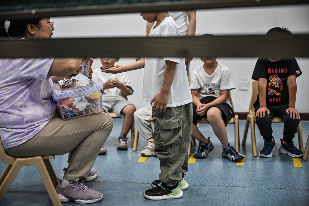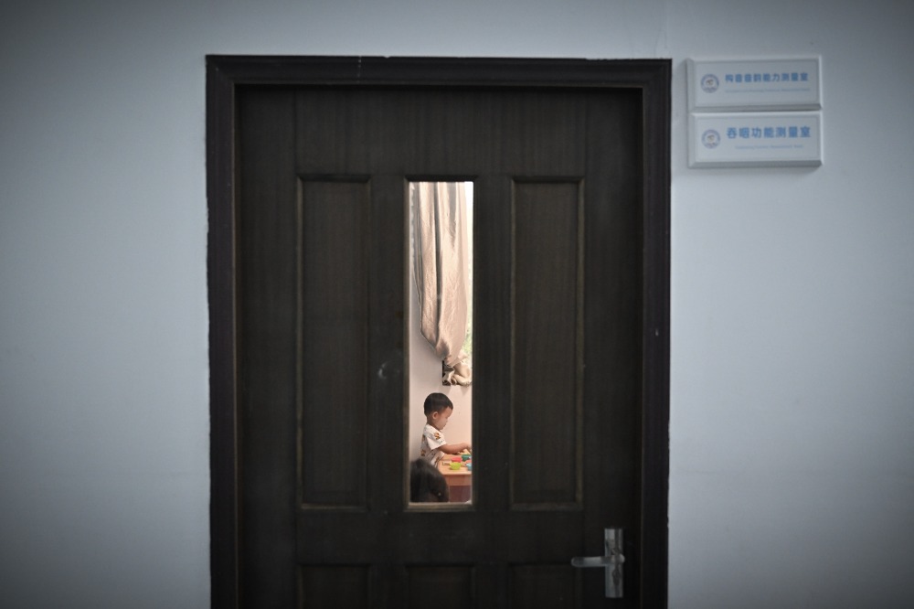 ▲5月29日,重慶師范大學(xué)兒童智能發(fā)展研究中心,老師和家長一起為孩子擦臉。記者 劉力 攝