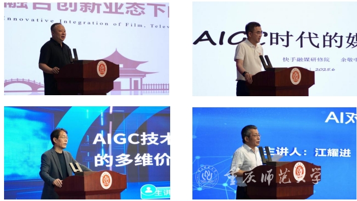 本次跨界·共融·聚勢——新質傳播智享會還圍繞內容新業態與傳播新生態,開展學術研討和實踐經驗分享。北京聯合大學惠東坡教授、快手科技副總裁余敬中、北京電影學院程檣教授、國家廣電總局《中國廣播影視》總經理江耀進、重慶麥芽傳媒有限公司董事長助理唐會余、重慶師范大學新聞與傳媒學院院長李明海教授分別圍繞“AIGC技術賦能視頻內容生產的多維價值審視”、“AIGC時代的媒體變革”、“融合創新業態下的影視、文旅與社交”、“AI對廣電生態的影響”、“網絡視聽新業態賦能跨界強傳播”、“全媒體智能化傳播的道法術器”等主題發表主旨演講。與會學界、業界代表重點圍繞新質傳播力打造和新質傳媒人才培養展開深度交流。