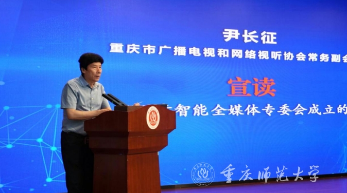 重慶市廣播電視和網絡視聽協會黨支部書記、常務副會長尹長征宣讀《關于同意智能全媒體專委會成立的批復》。
